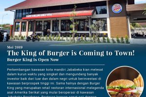 Ragam kuliner ternama baru hadir di tengah kawasan Jababeka Residence di tahun 2019. Sebut saja seperti Burger King – retail restoran internasional melegenda asal Amerika